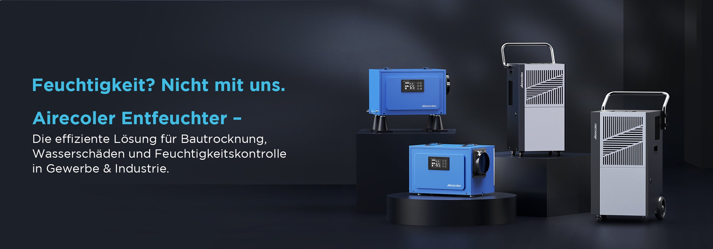 Geeignet für Industrie, Lager und Bauprojekte. Ideal zur Feuchtigkeitskontrolle, Bautrocknung und Schadensprävention.
